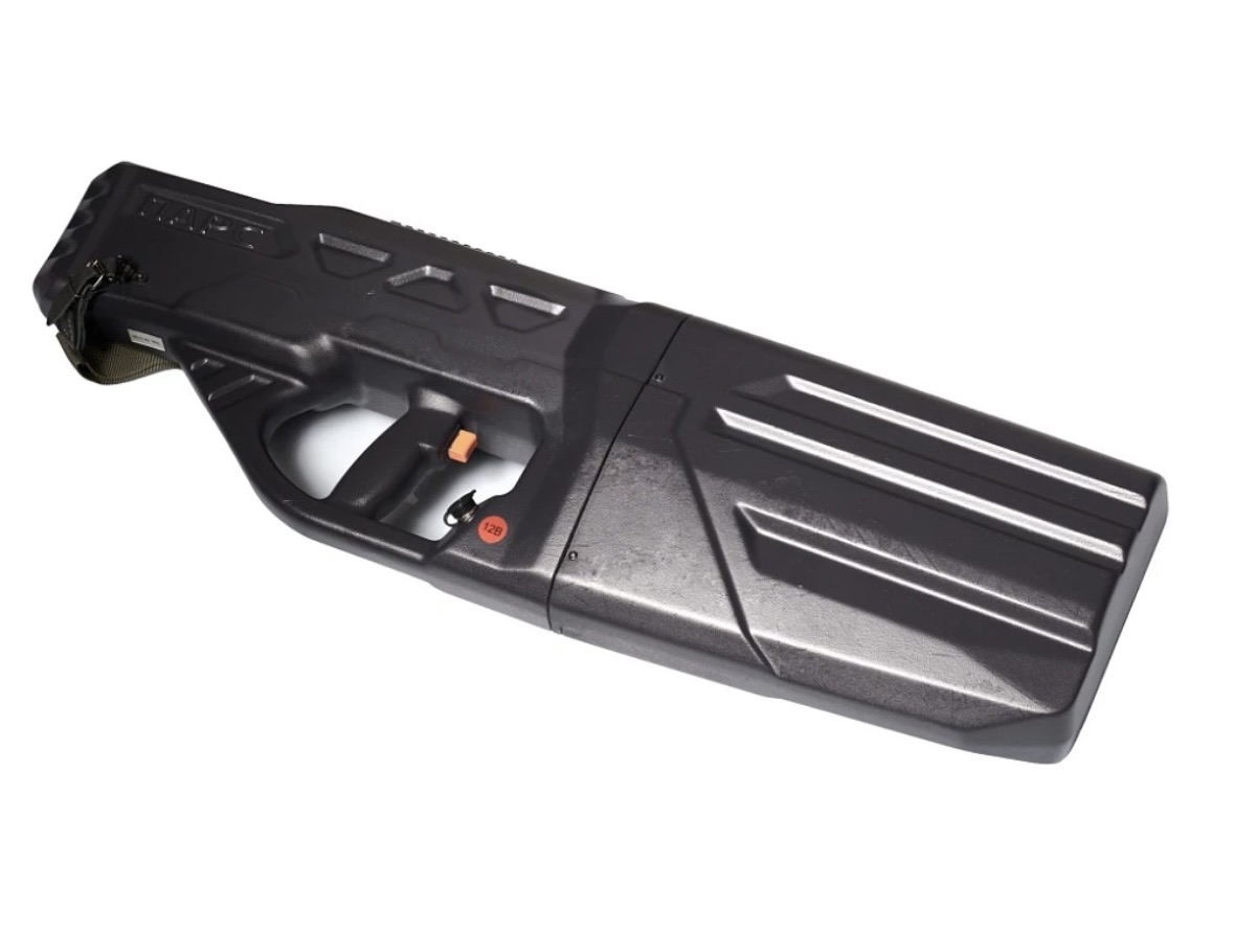 Ружье против дронов Парс-Н Ступор имеет футуристический дизайн и значительно отличается от других антидроновых пушек. Его внешний вид отдаленно напоминает стрелковое оружие. Такой выбор не случаен, ведь в процессе использования оператор обязан удерживать устройство в руках, а, следовательно, оно должно быть эргономичным и корректно распределять нагрузку.